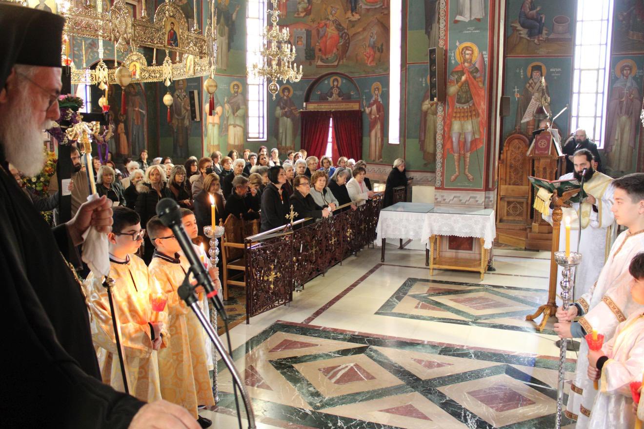 Μετά την αποκαθήλωση, την λιτάνευση του Επιταφίου και την απόθεσή του στο ευτρεπισμένο κουβούκλιο ο Σεβασμιώτατος έψαλε το δοξαστικό των Αποστίχων του εσπερινού «Σε τον αναβαλλόμενον το φως, ώσπερ ιμάτιον».